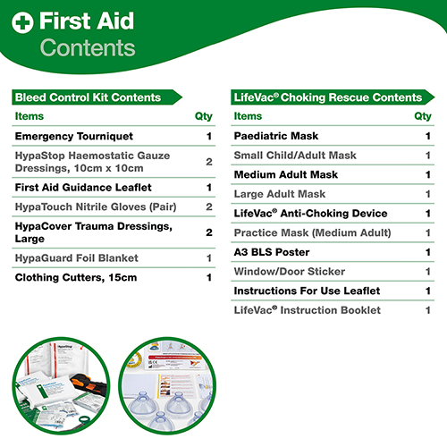 Enables swift intervention during critical incidents – the LifeVac allows rapid action in choking emergencies, while the critical injury kit provides essential supplies for life-threatening bleeds.